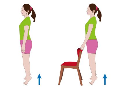 もう一つお勧めなのがふくらはぎのポンプ運動で、かかと上げを30回ほど行って代謝を高めましょう