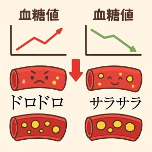 老廃物が溜まり水分不足のために代謝が落ち、その状態では血液中に糖質や脂質が余りやすくなり血流もドロドロになります。