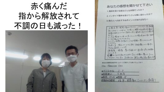 そこで、胃腸の機能を高めてむくみを解消することで指の腫れや痛みが解消されました。